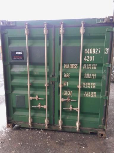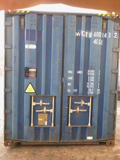 Zustand: Gebraucht CSC verfügbar: — 40'Lagercontainer, gebraucht, repariert für Lagerzwecke, wind/wasserdicht, nicht mit Stapler befahrbar, kann im vollen Zustand nicht verhoben werden, ohne CSC Plakette. ![]()
